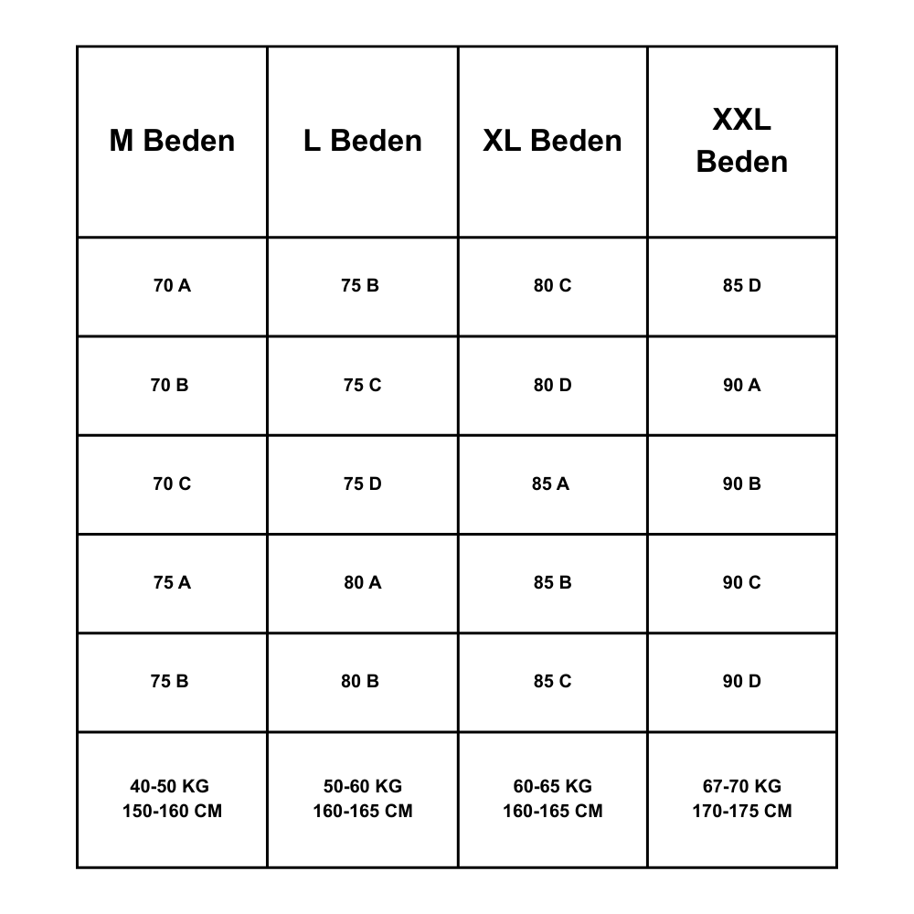 Lütfen ürün görselleri arasında bulunan Beden Tablosunu kullanın. Göğüs altı çevrenizi ölçerek tabloda size en uygun bedeni kolayca bulabilirsiniz. İki beden arasında kalırsanız, konfor için bir büyük bedeni tercih etmeniz önerilir.